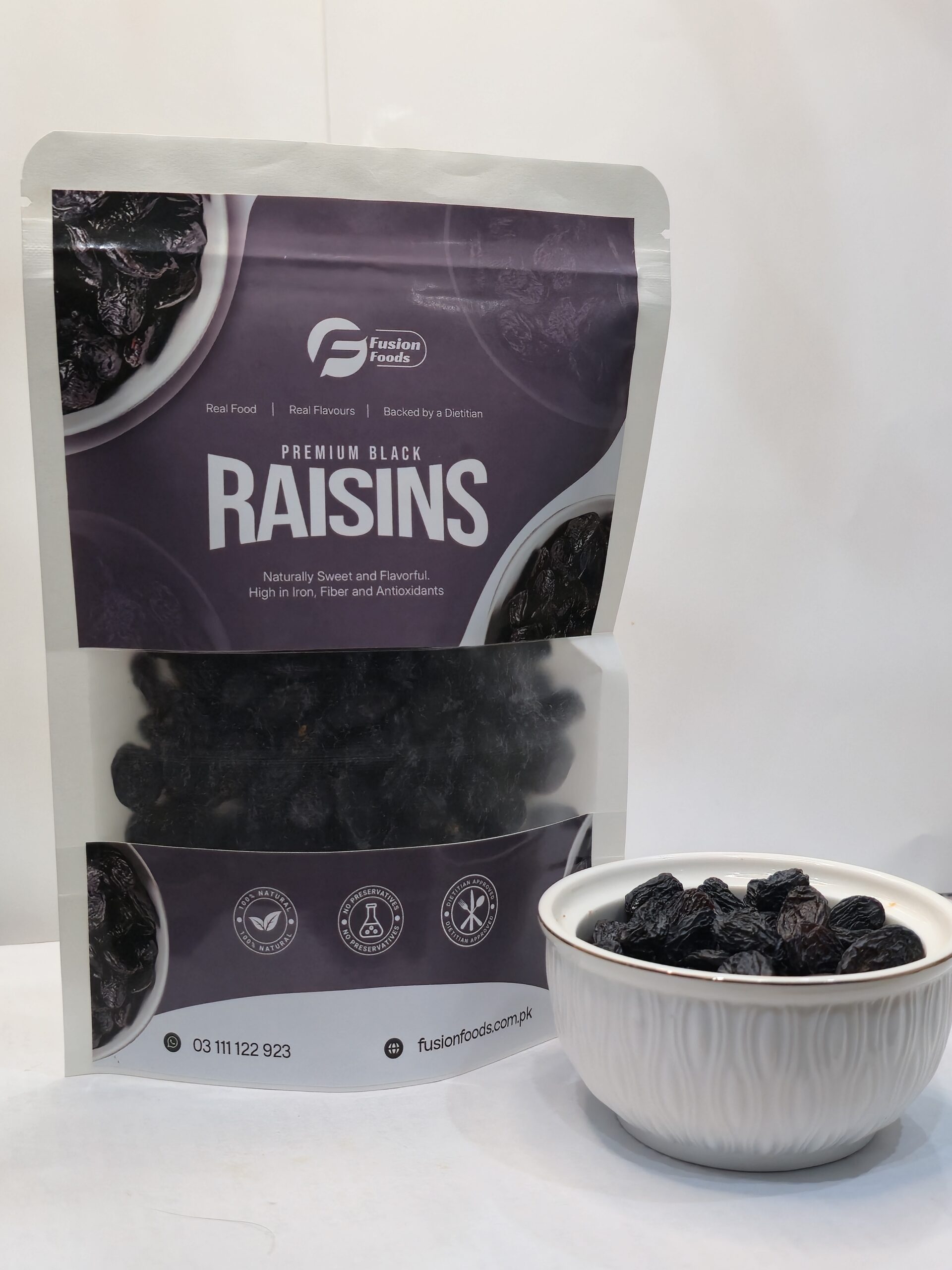 Sweet, chewy, and loaded with nutrition. Fusion Foods Black Raisins are more than just a snack. These naturally sun-dried grapes are a powerhouse of antioxidants, iron, and fiber, making them a must-have for daily vitality and wellness.